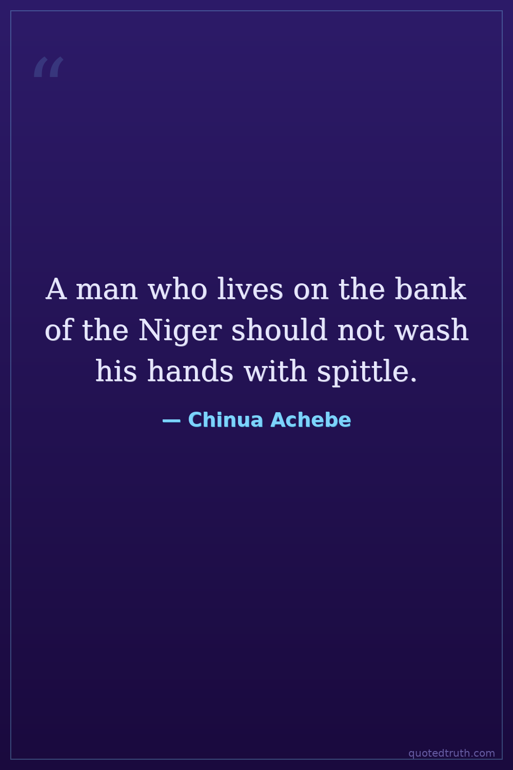 A man who lives on the bank of the Niger should not wash his hands with spittle.