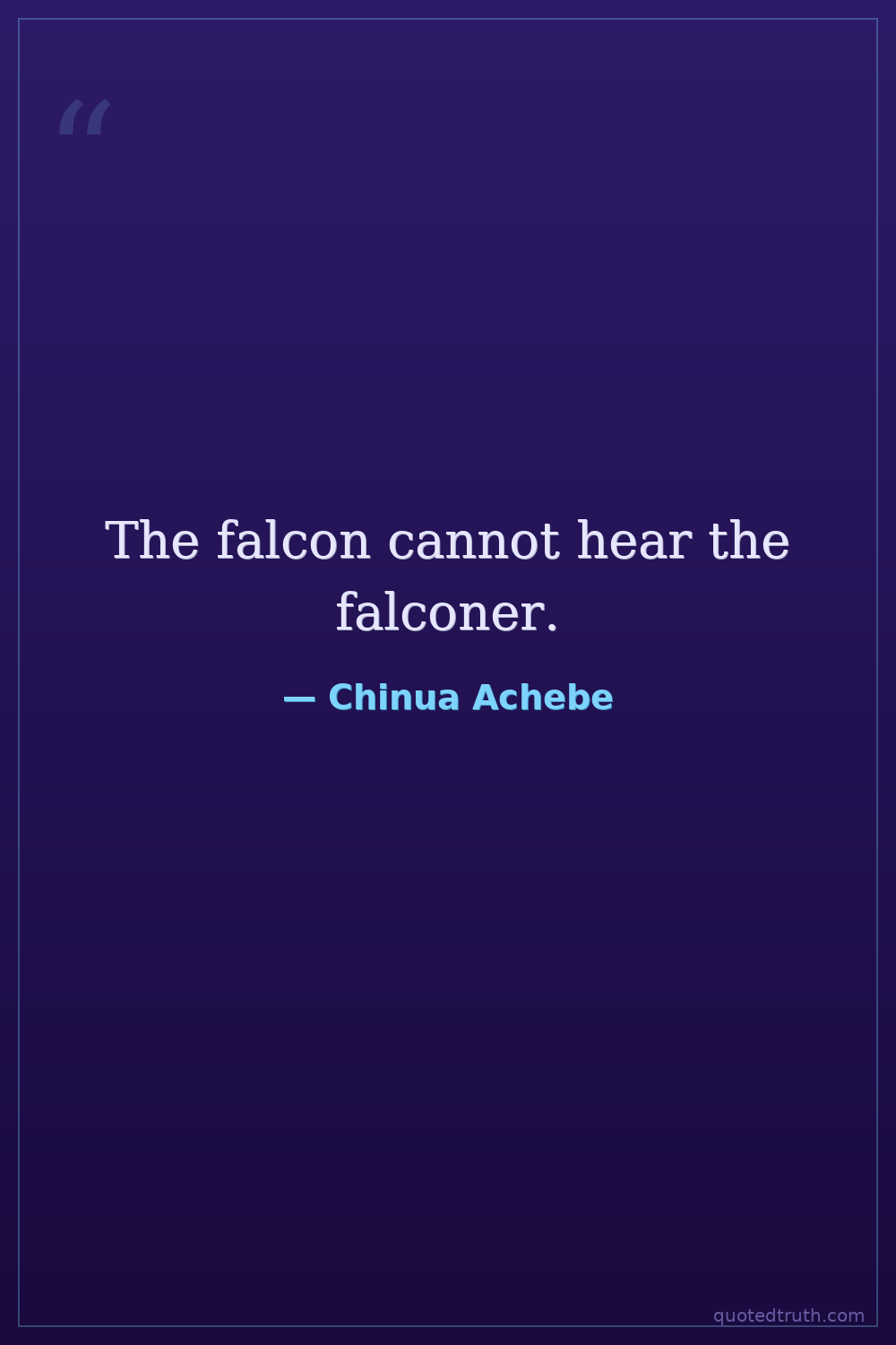 The falcon cannot hear the falconer.