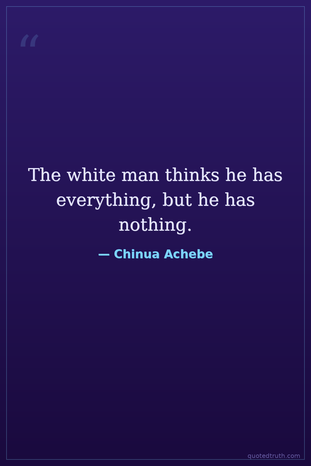 The white man thinks he has everything, but he has nothing.