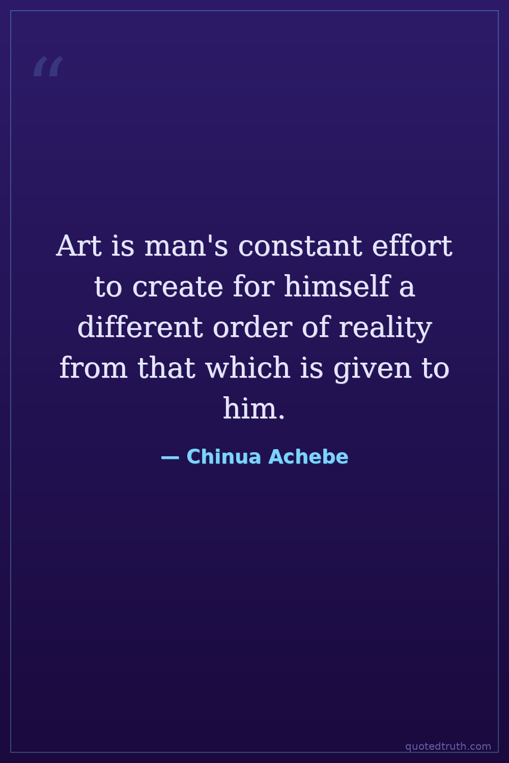 Art is man's constant effort to create for himself a different order of reality from that which is given to him.