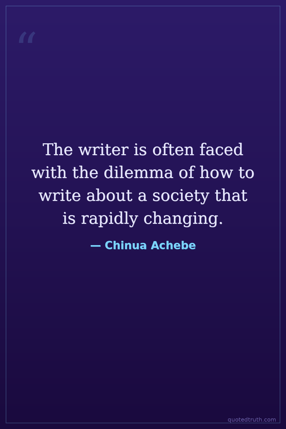 The writer is often faced with the dilemma of how to write about a society that is rapidly changing.