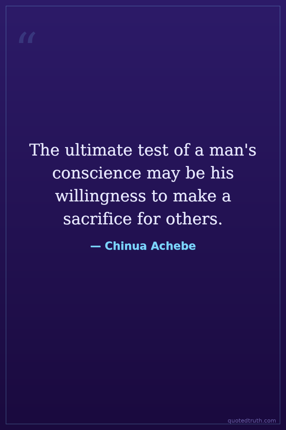 The ultimate test of a man's conscience may be his willingness to make a sacrifice for others.
