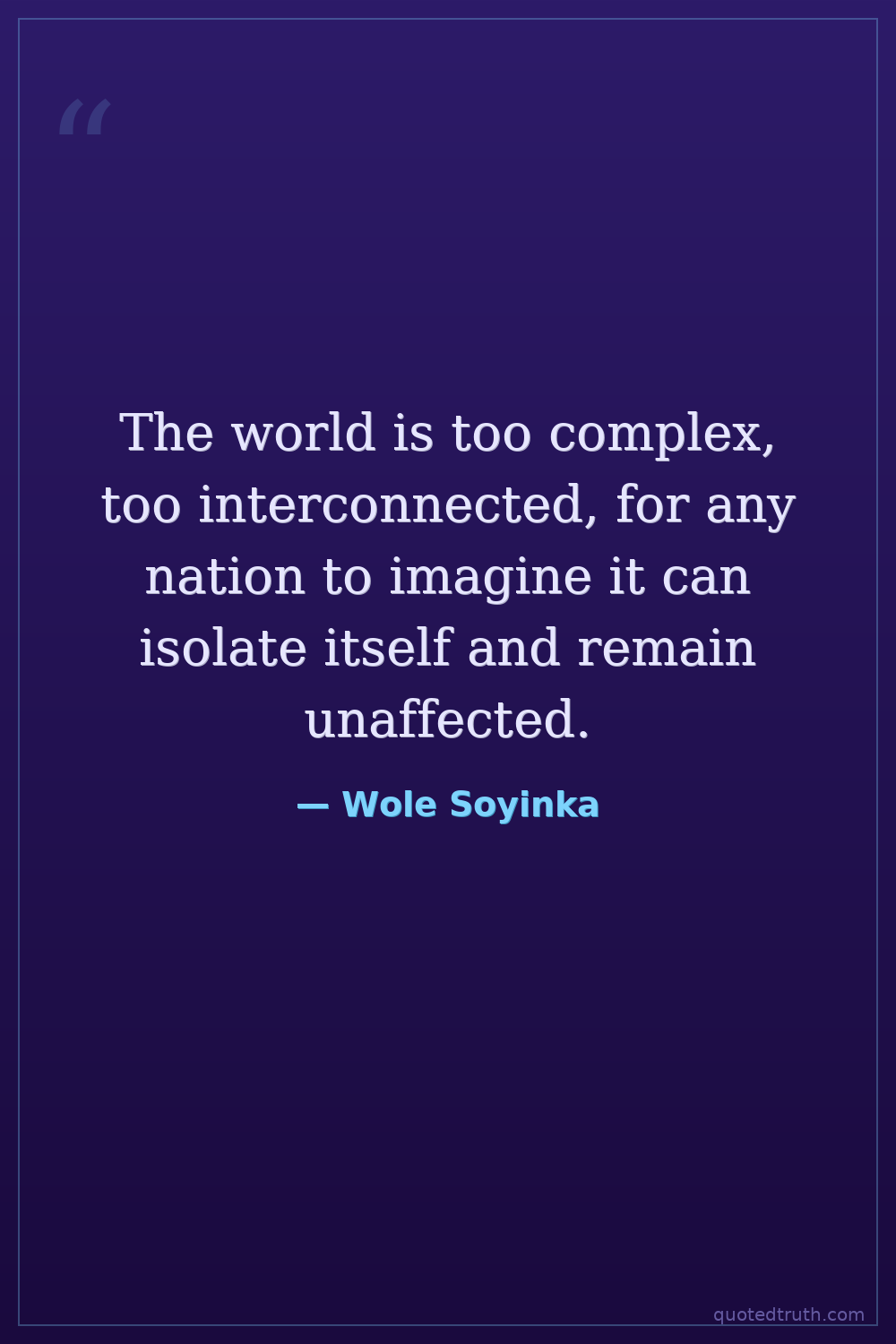 The world is too complex, too interconnected, for any nation to imagine it can isolate itself and remain unaffected.