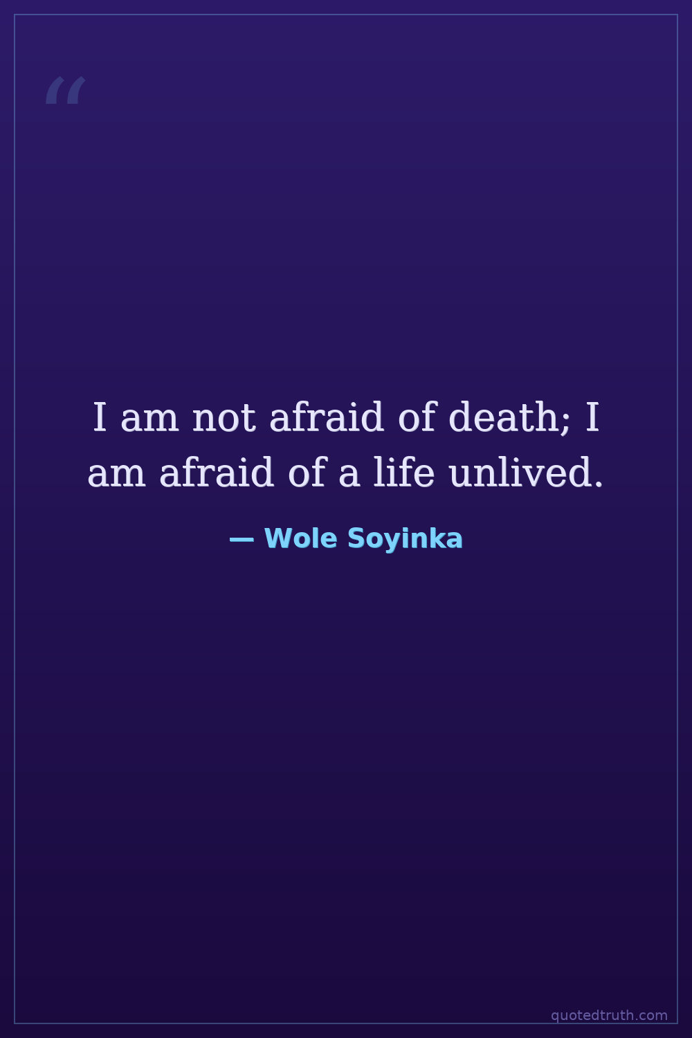 I am not afraid of death; I am afraid of a life unlived.