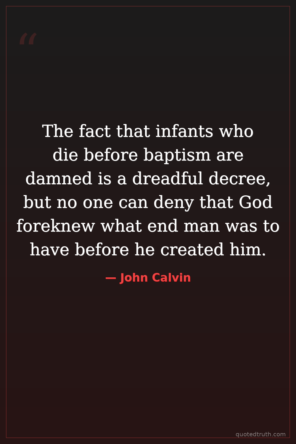 Institutes of the Christian Religion, Book III, Chapter 23, Section 7 (paraphrased from the context of reprobation for infants)