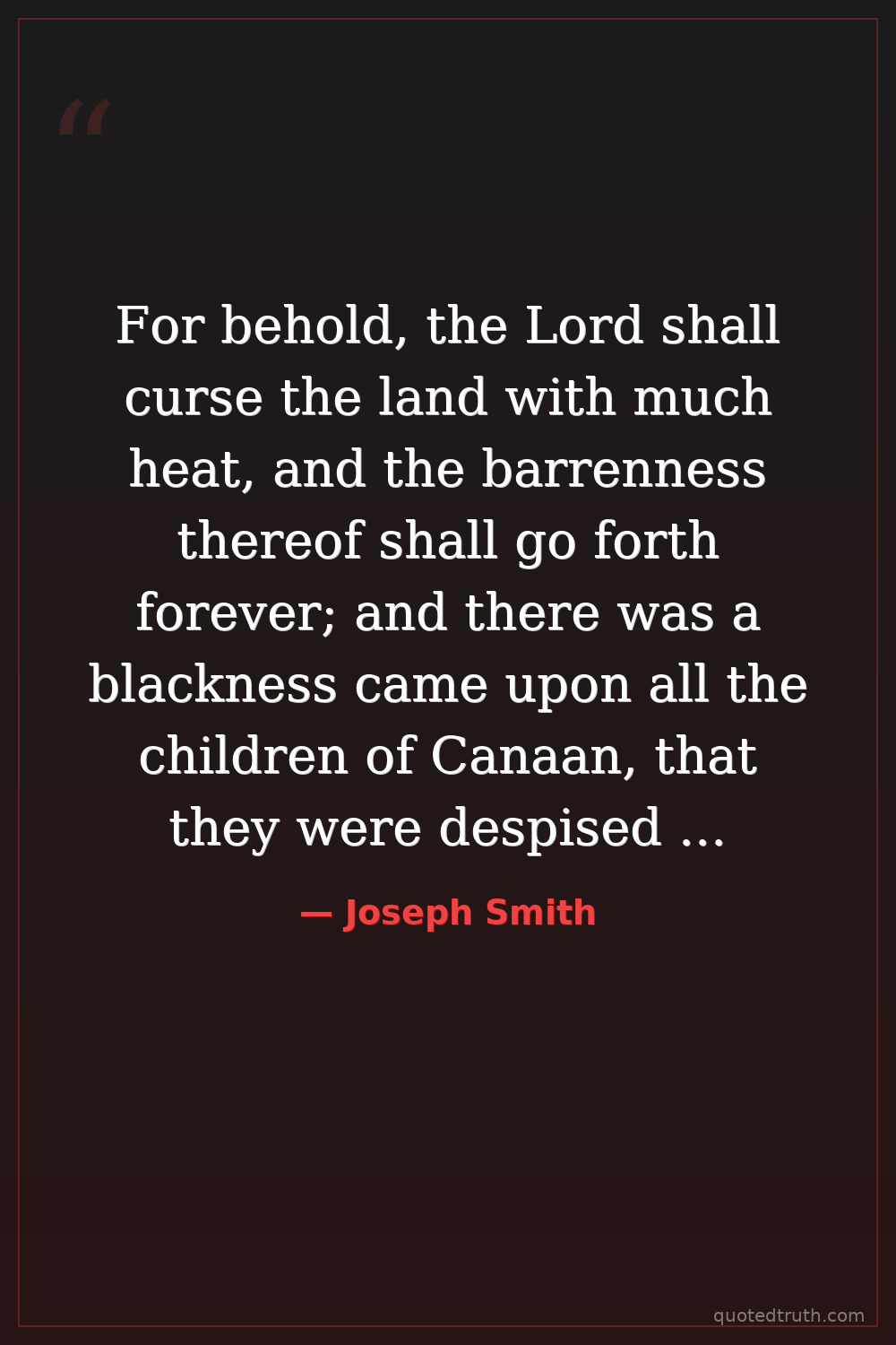 For behold, the Lord shall curse the land with much heat, and the barrenness thereof shall go forth forever; and there was a blackness came upon all the children of Canaan, that they were despised among all people.