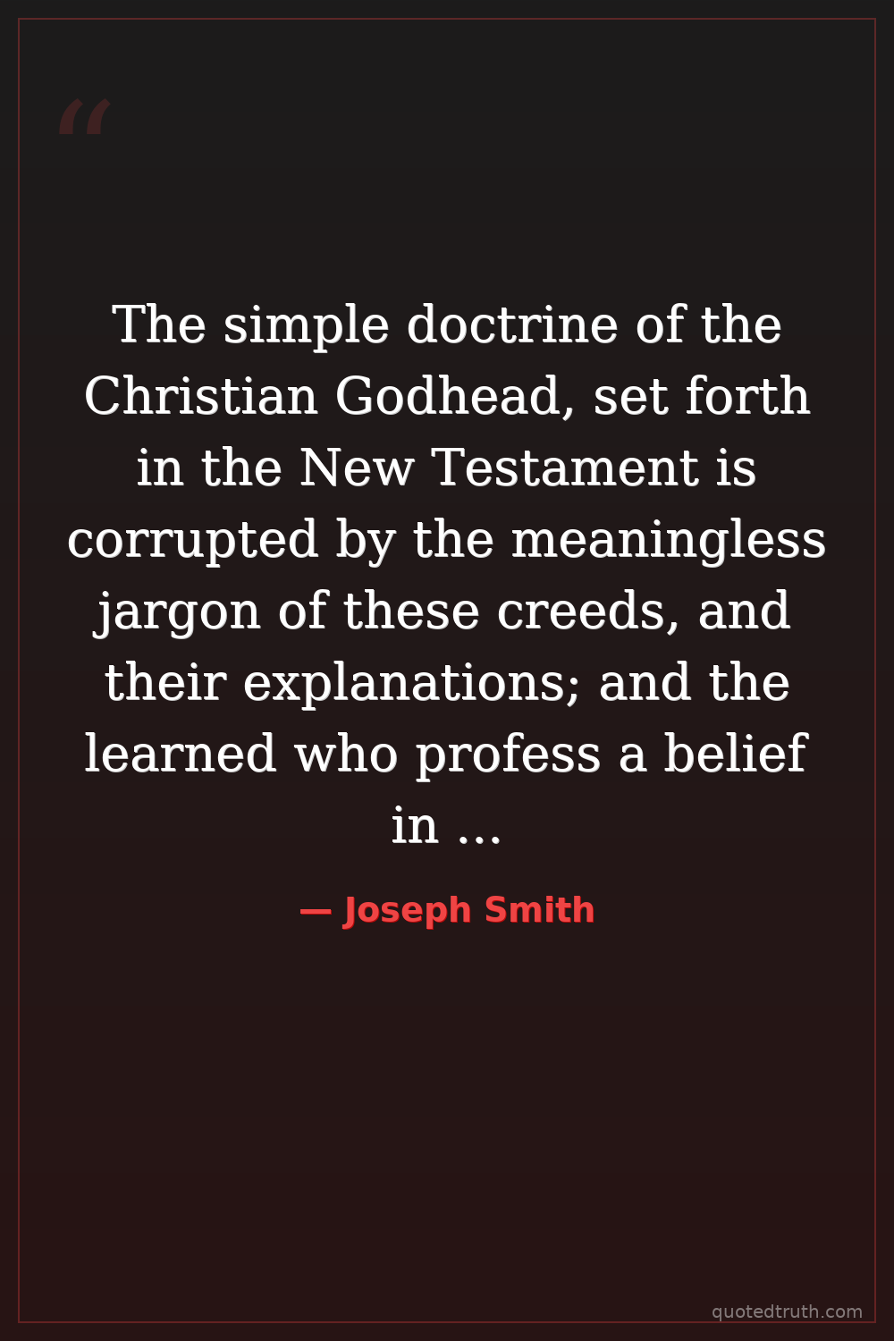 The simple doctrine of the Christian Godhead, set forth in the New Testament is corrupted by the meaningless jargon of these creeds, and their explanations; and the learned who profess a belief in them are wandering in the darkness of the mysticisms of the old pagan philosophies.