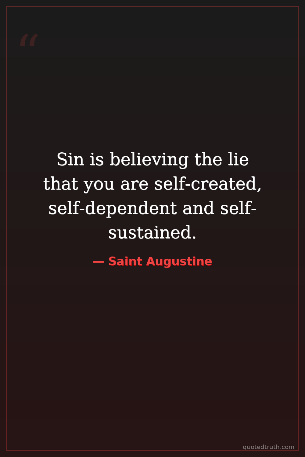 Sin is believing the lie that you are self-created, self-dependent and self-sustained.
