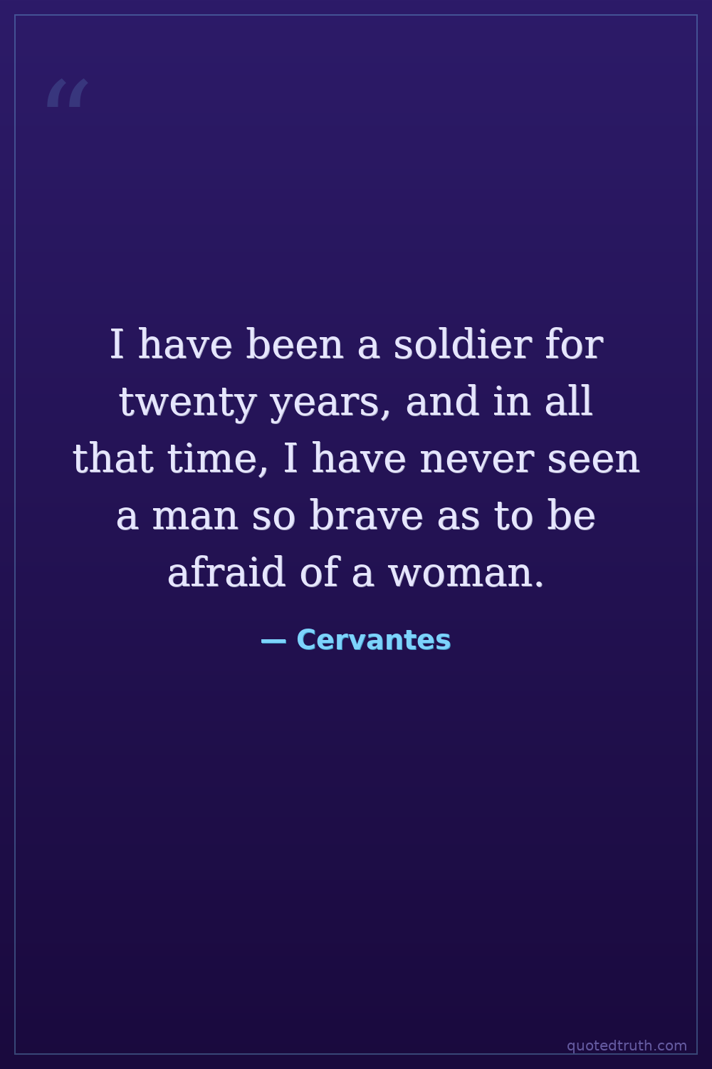 I have been a soldier for twenty years, and in all that time, I have never seen a man so brave as to be afraid of a woman.