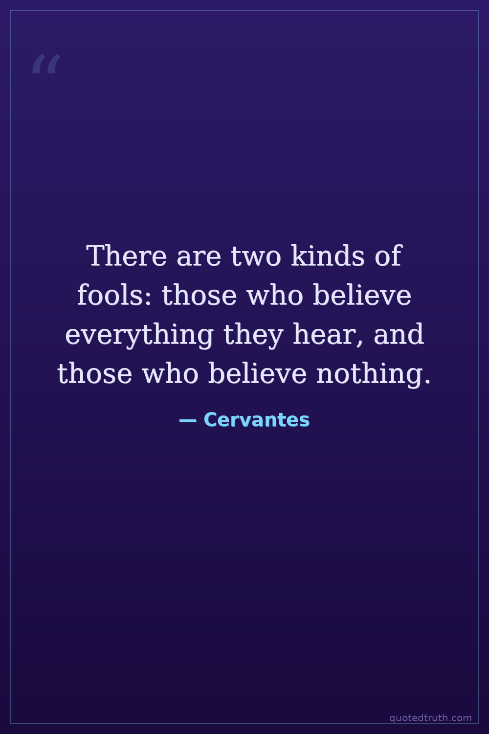There are two kinds of fools: those who believe everything they hear, and those who believe nothing.