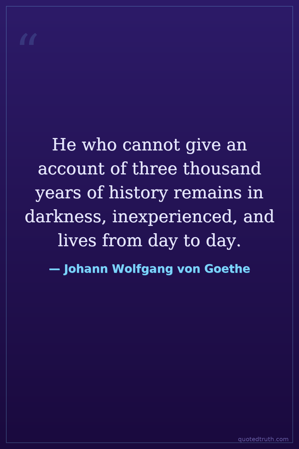 He who cannot give an account of three thousand years of history remains in darkness, inexperienced, and lives from day to day.