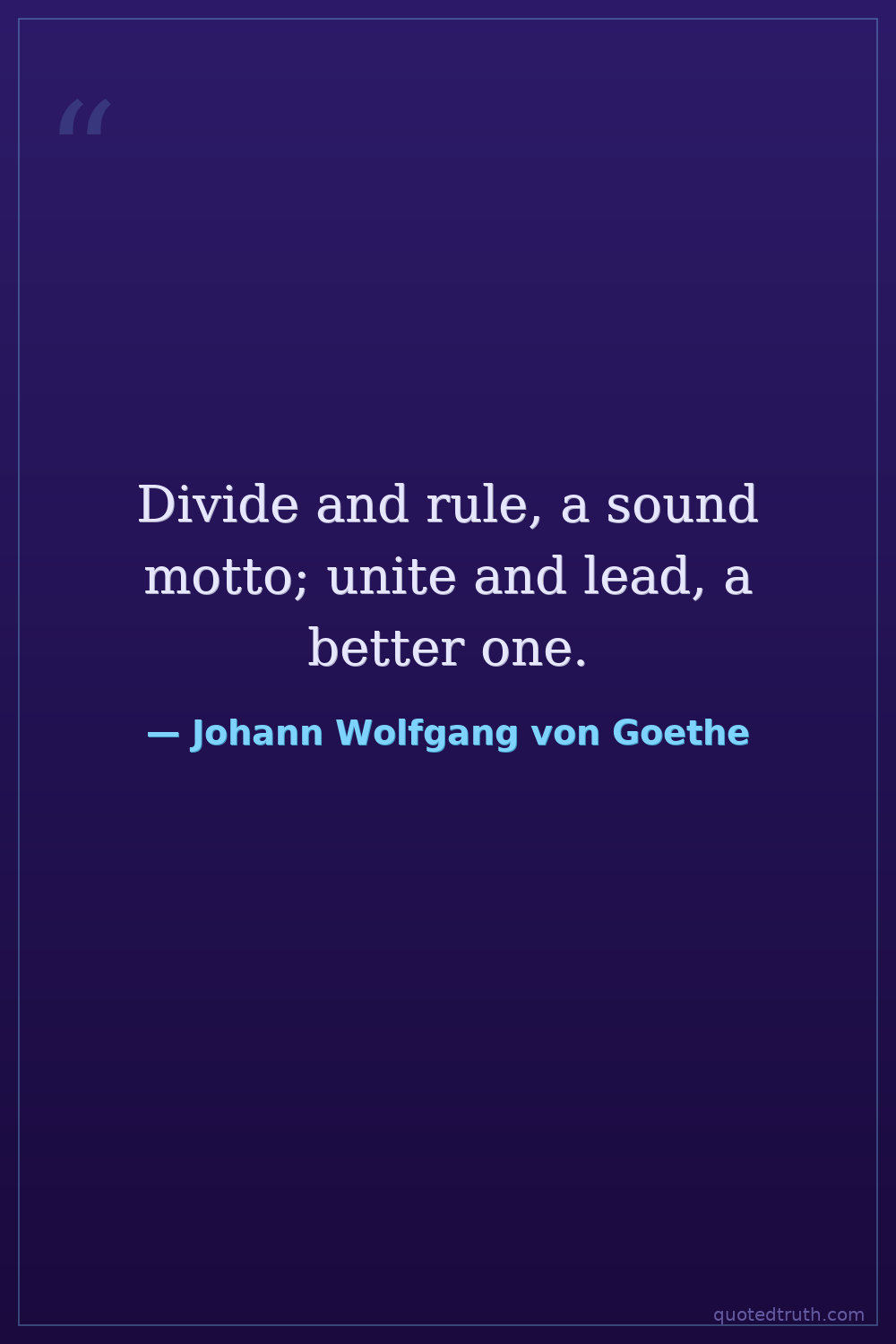 Divide and rule, a sound motto; unite and lead, a better one.