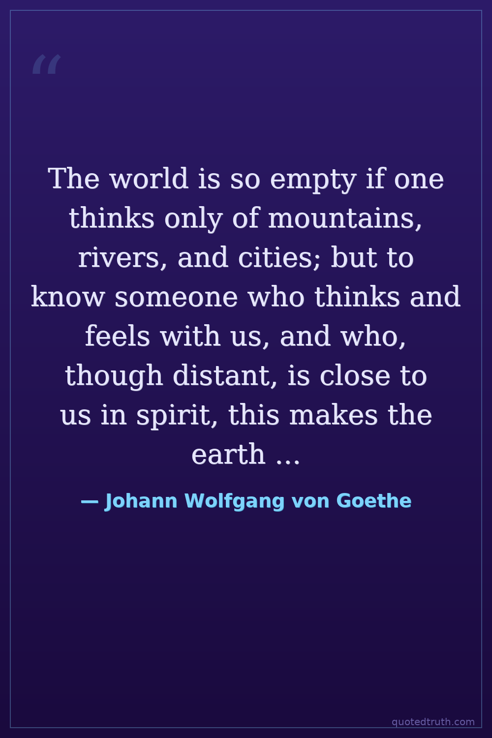 The world is so empty if one thinks only of mountains, rivers, and cities; but to know someone who thinks and feels with us, and who, though distant, is close to us in spirit, this makes the earth an inhabited garden.