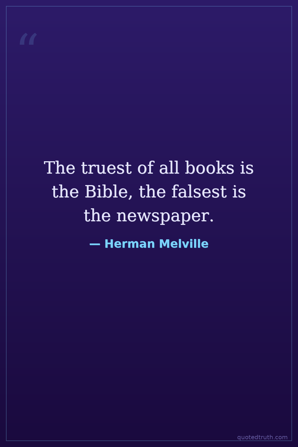 The truest of all books is the Bible, the falsest is the newspaper.