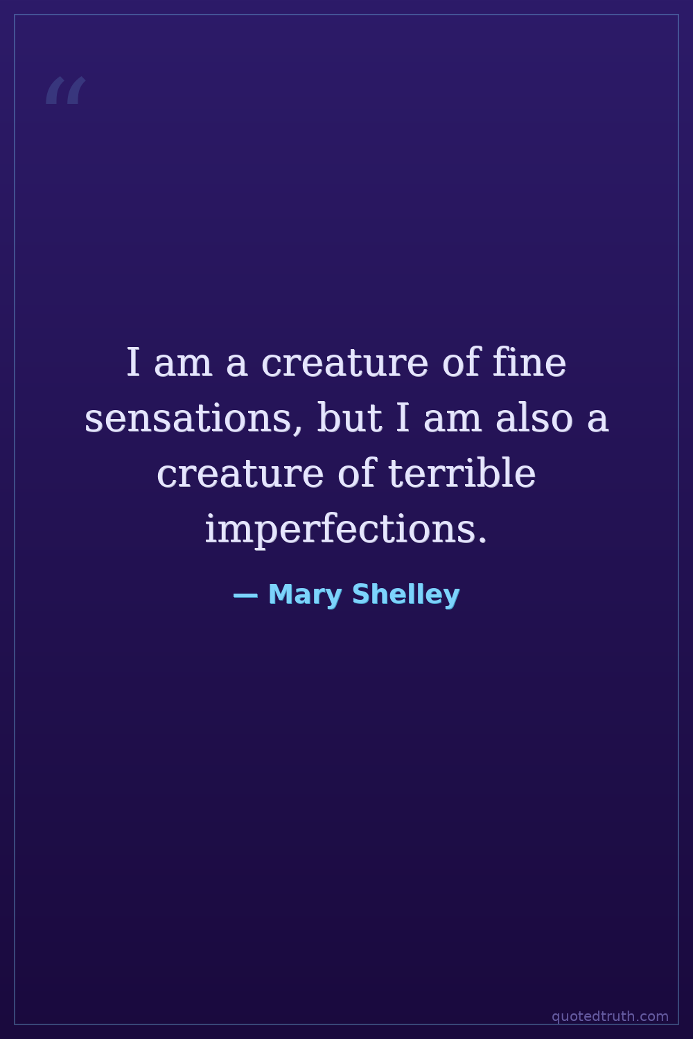 I am a creature of fine sensations, but I am also a creature of terrible imperfections.