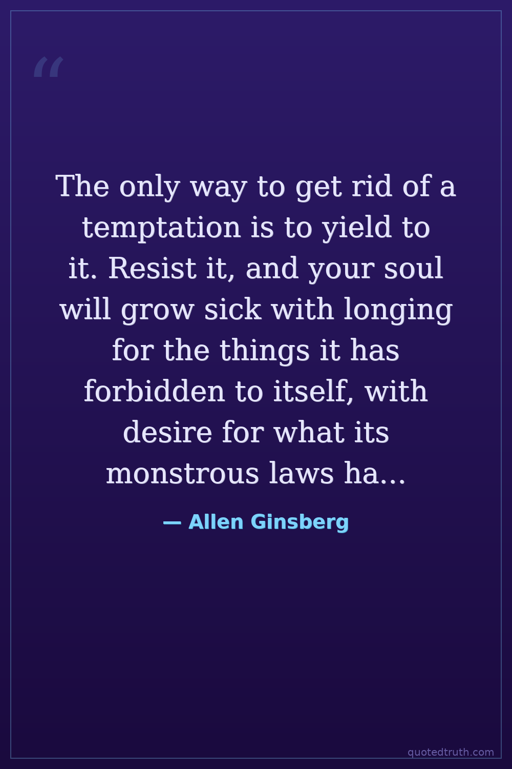 The only way to get rid of a temptation is to yield to it. Resist it, and your soul will grow sick with longing for the things it has forbidden to itself, with desire for what its monstrous laws have made monstrous and unlawful.