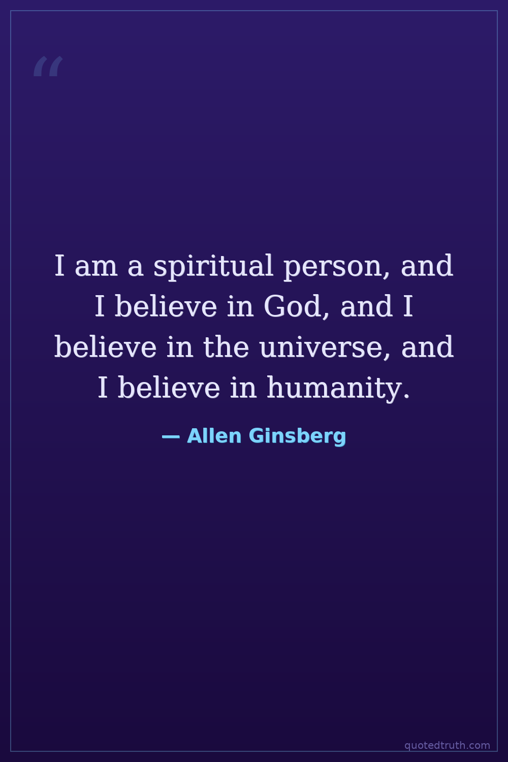 I am a spiritual person, and I believe in God, and I believe in the universe, and I believe in humanity.