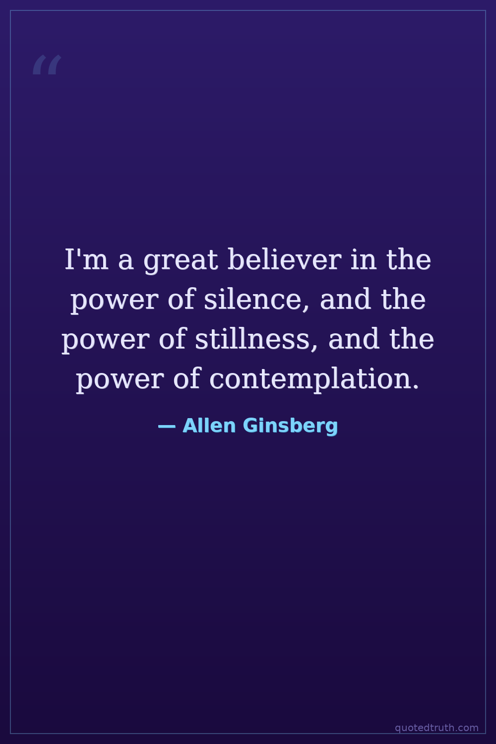 I'm a great believer in the power of silence, and the power of stillness, and the power of contemplation.