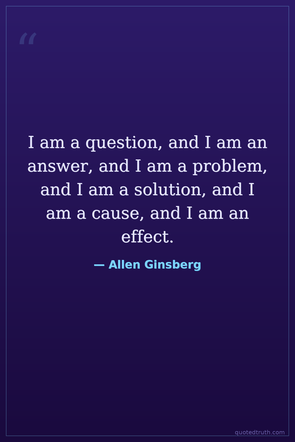 I am a question, and I am an answer, and I am a problem, and I am a solution, and I am a cause, and I am an effect.