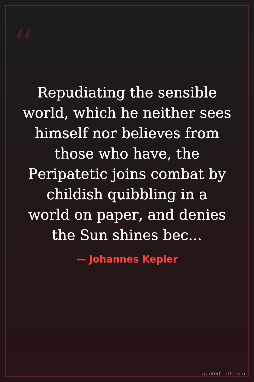 Repudiating the sensible world, which he neither sees himself nor believes from those who have, the Peripatetic joins combat by childish quibbling in a world on paper, and denies the Sun shines because he himself is blind.