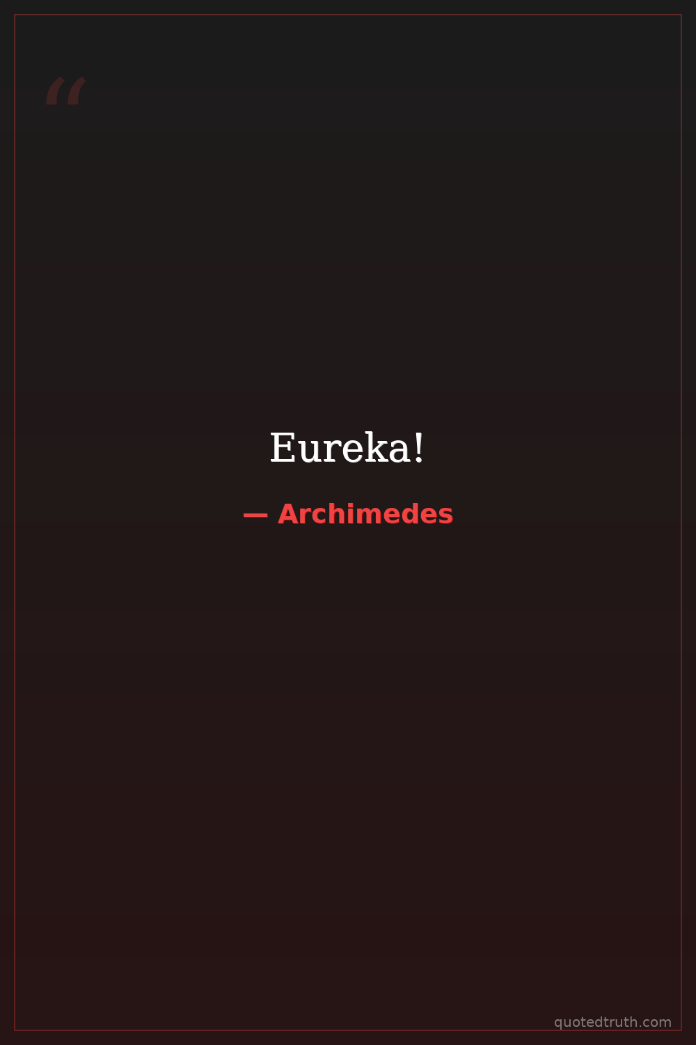 Exclaimed upon discovering the principle of buoyancy, running naked through the streets of Syracuse.