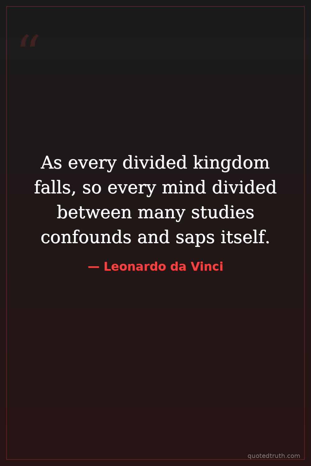 As every divided kingdom falls, so every mind divided between many studies confounds and saps itself.