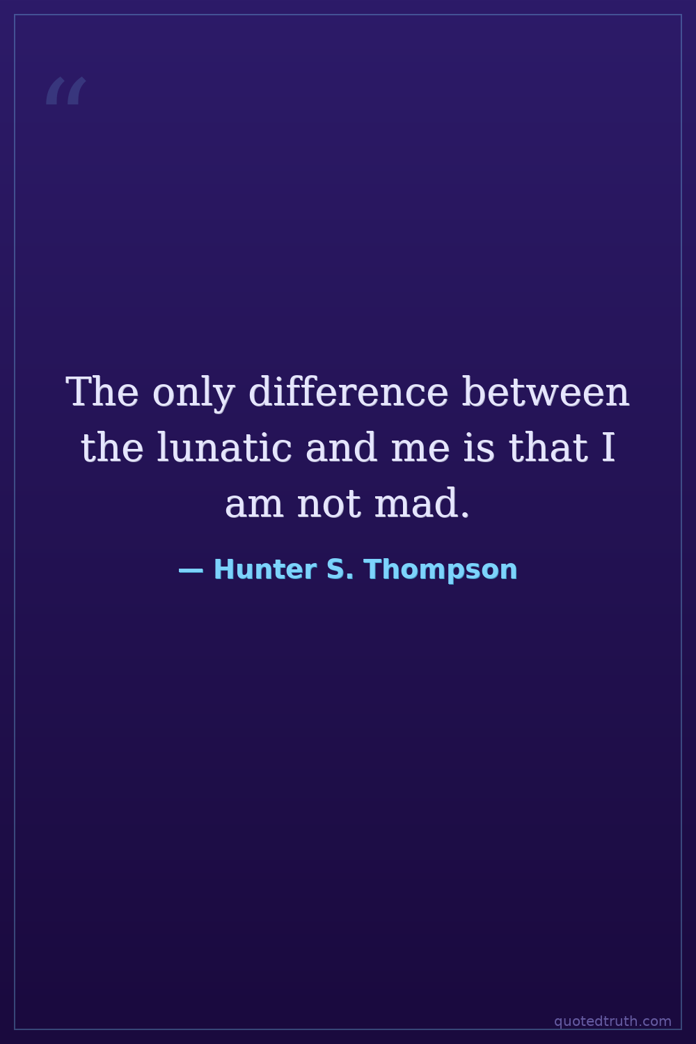 The only difference between the lunatic and me is that I am not mad.