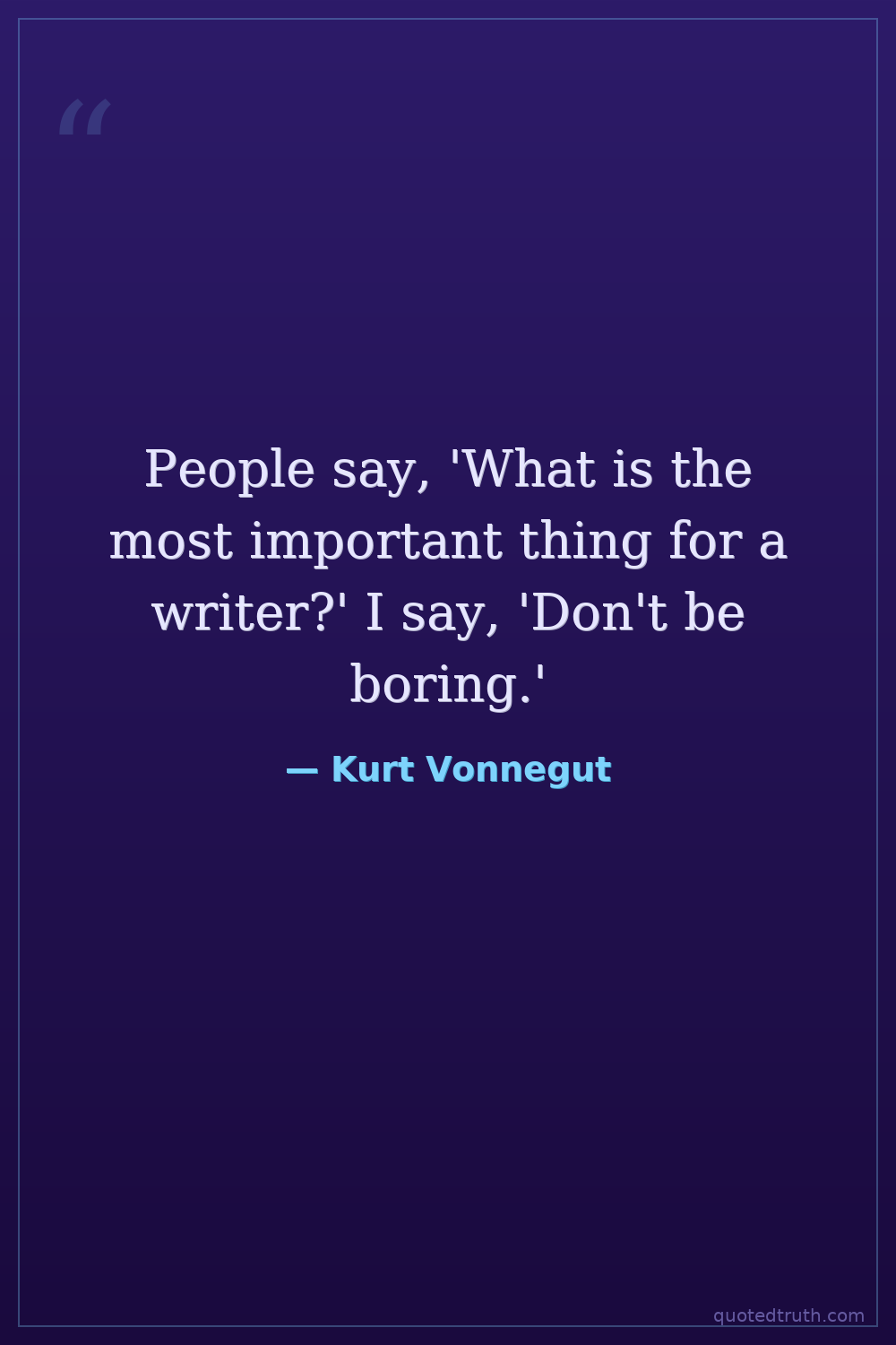 People say, 'What is the most important thing for a writer?' I say, 'Don't be boring.'