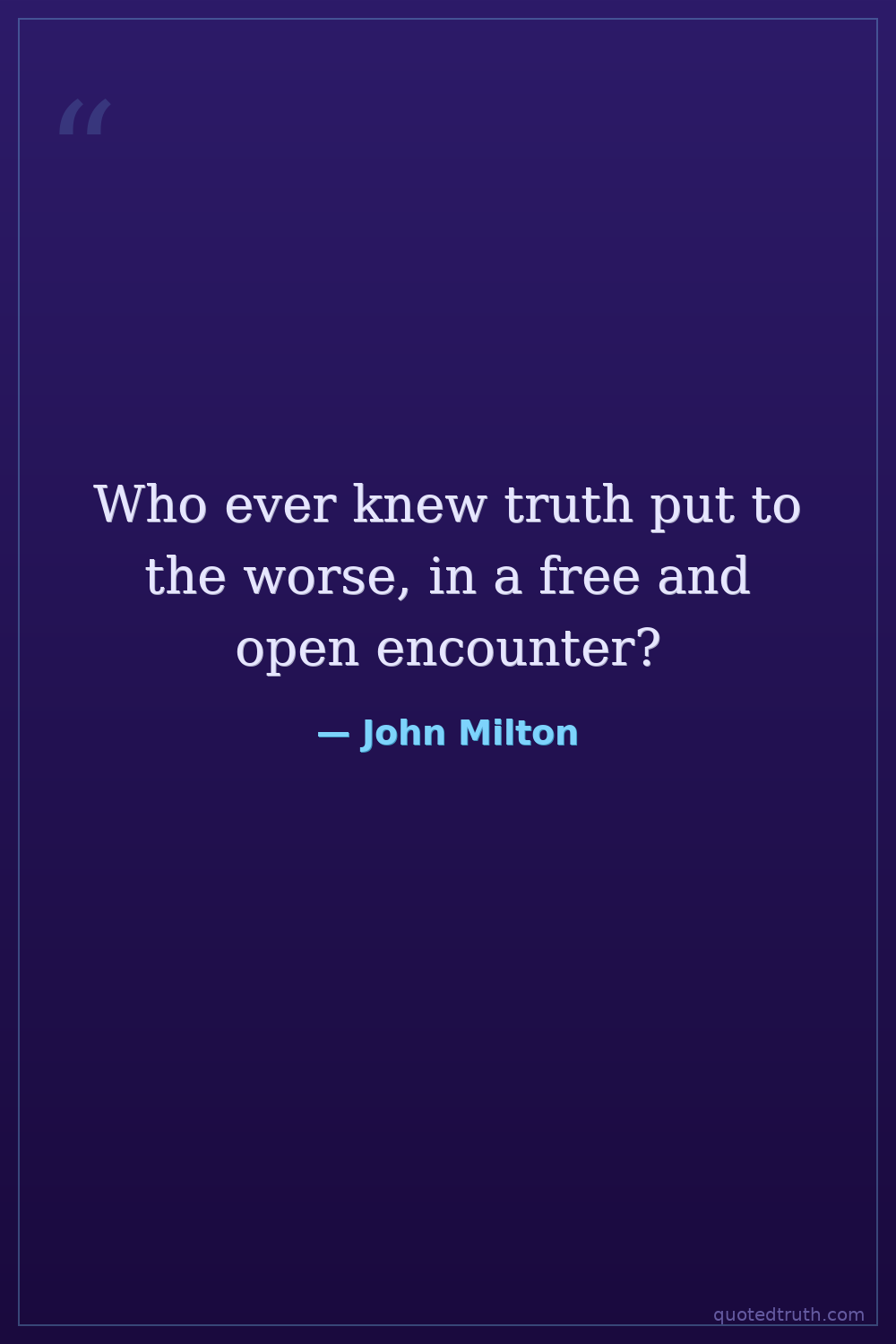 Who ever knew truth put to the worse, in a free and open encounter?