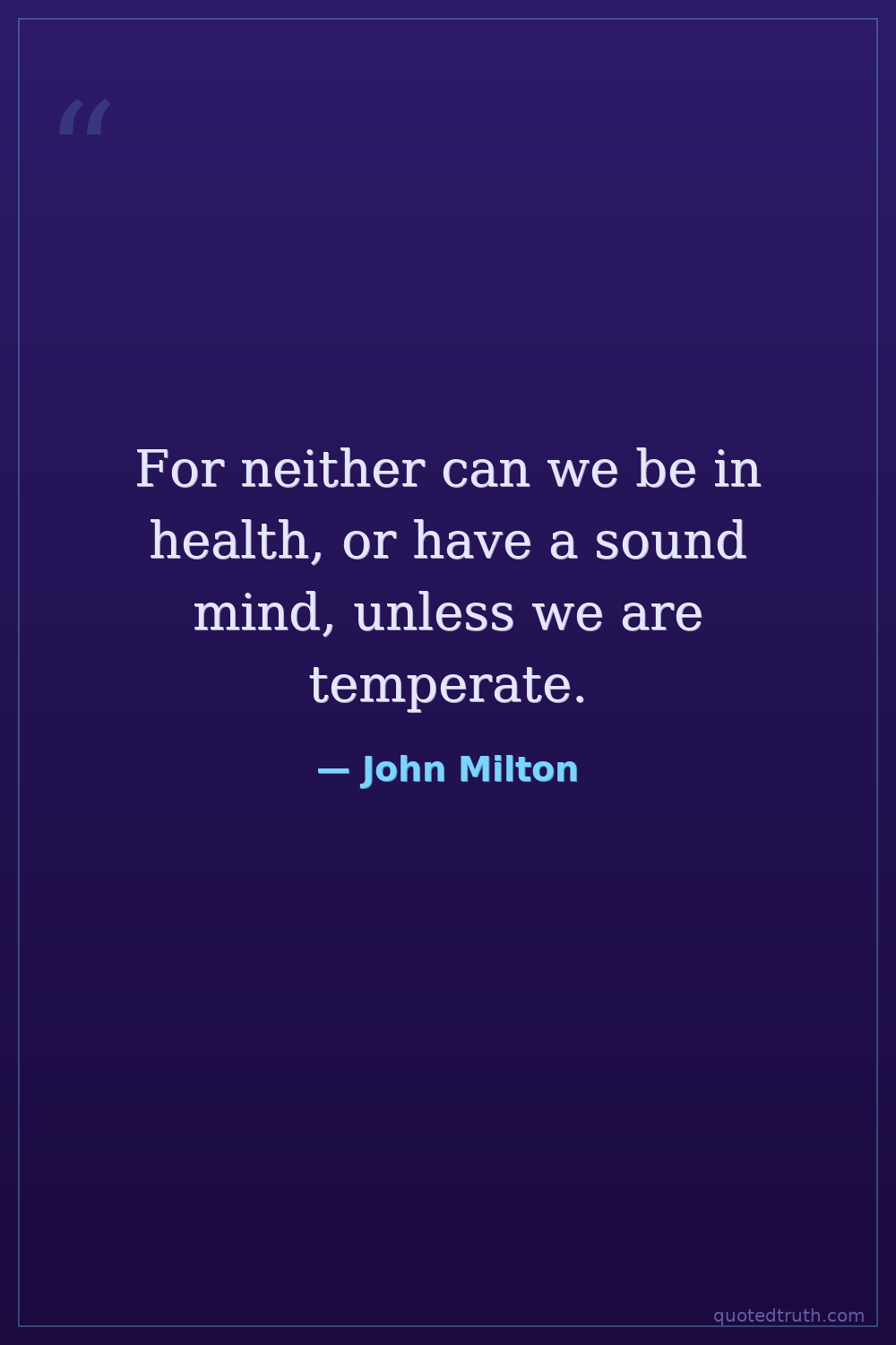 For neither can we be in health, or have a sound mind, unless we are temperate.