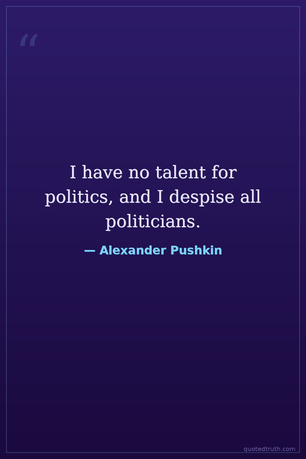 I have no talent for politics, and I despise all politicians.