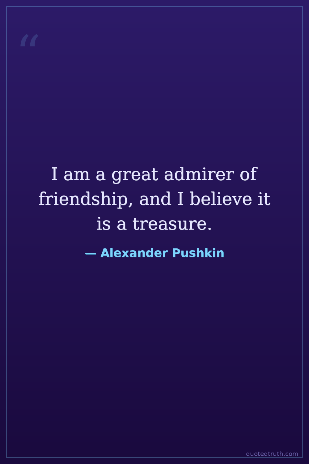I am a great admirer of friendship, and I believe it is a treasure.