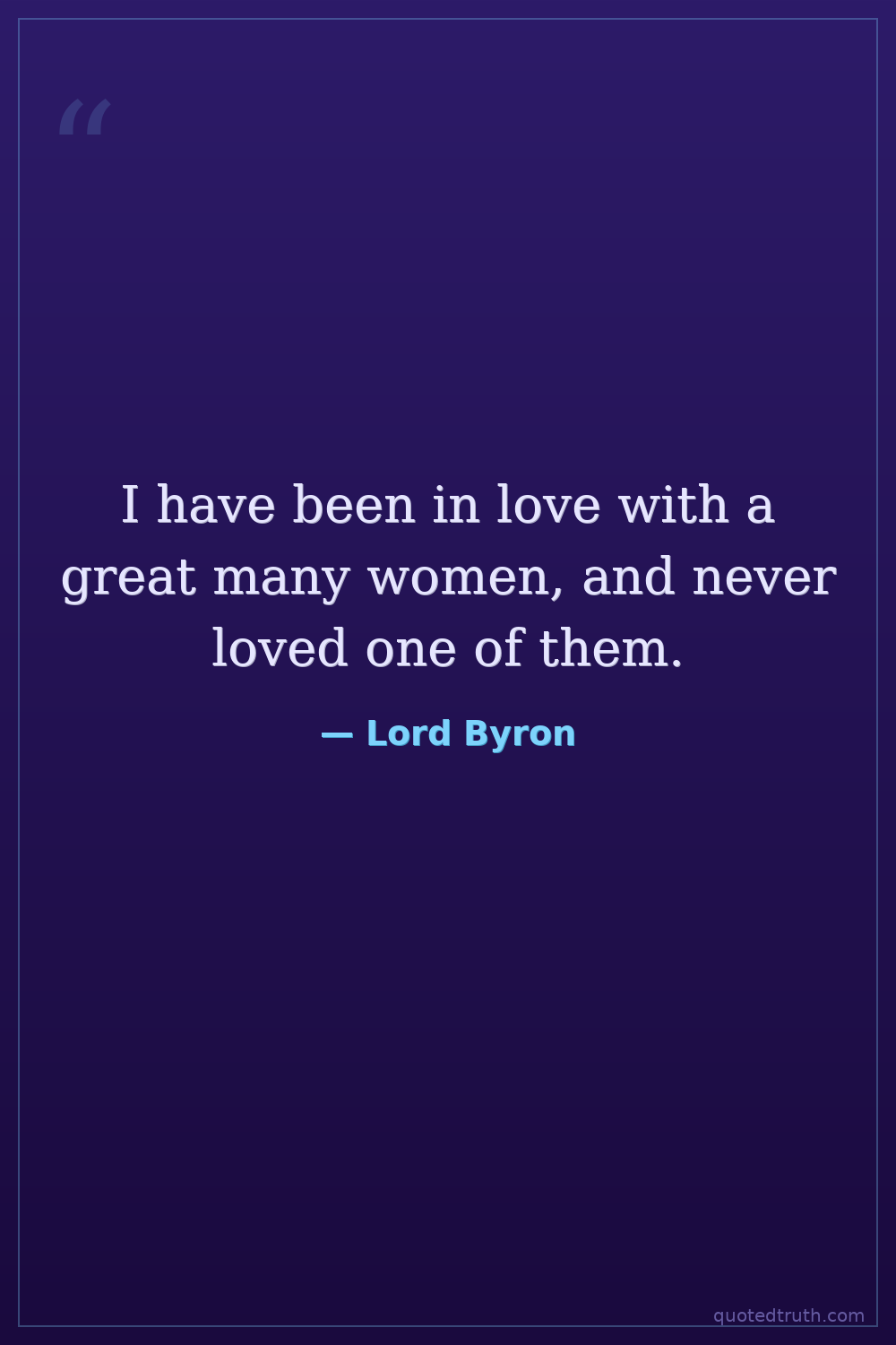 I have been in love with a great many women, and never loved one of them.