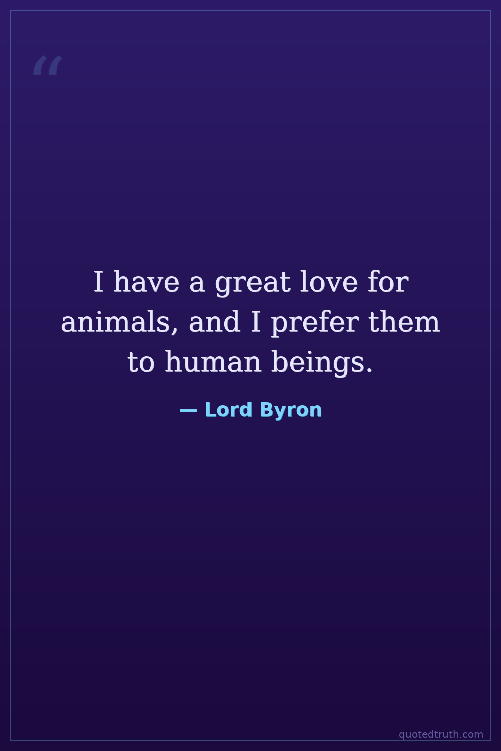 I have a great love for animals, and I prefer them to human beings.