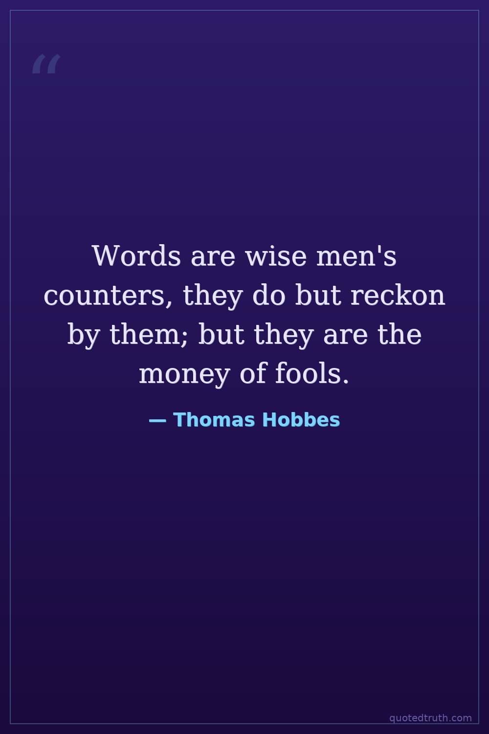 Words are wise men's counters, they do but reckon by them; but they are the money of fools.
