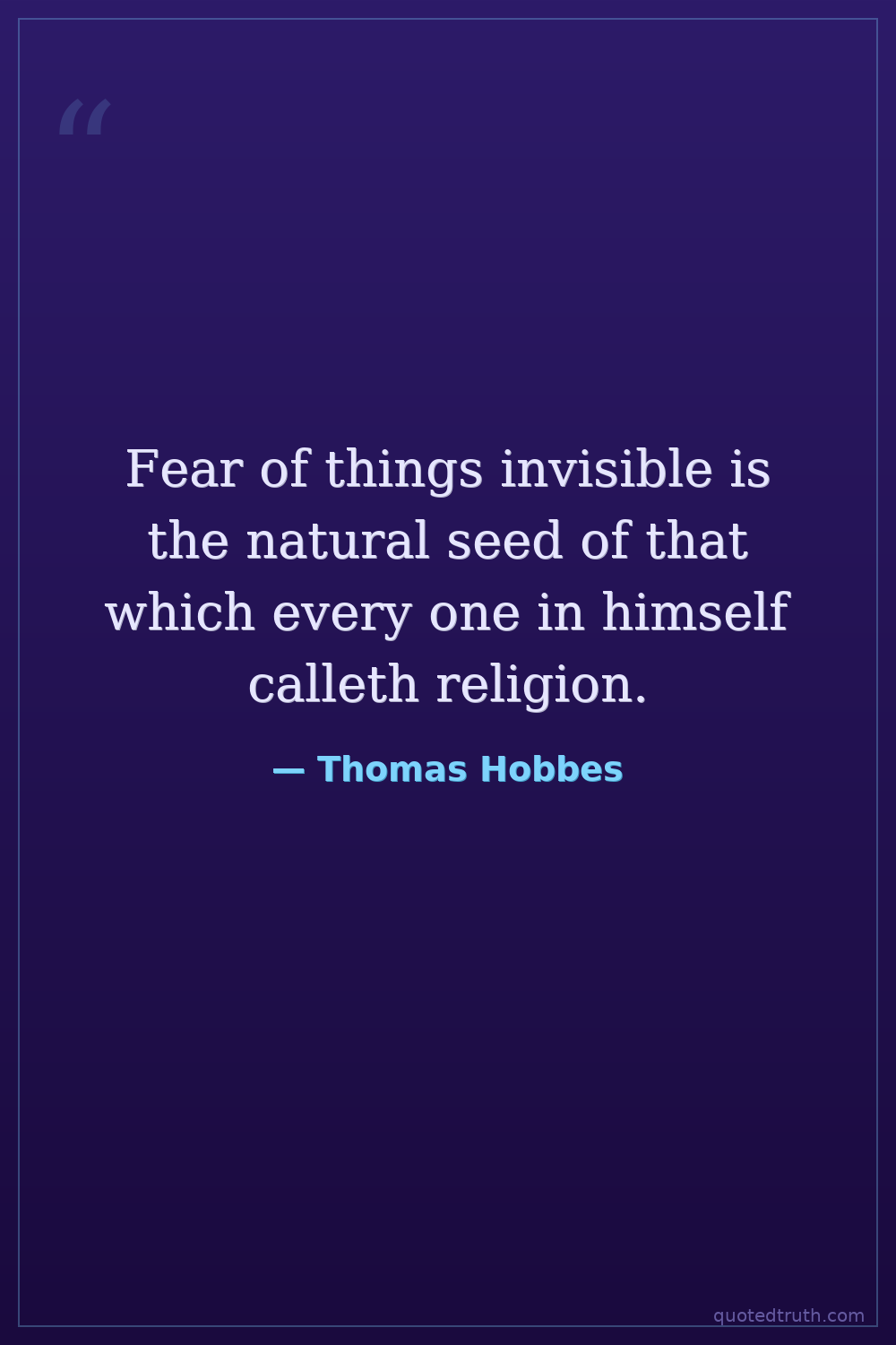 Fear of things invisible is the natural seed of that which every one in himself calleth religion.