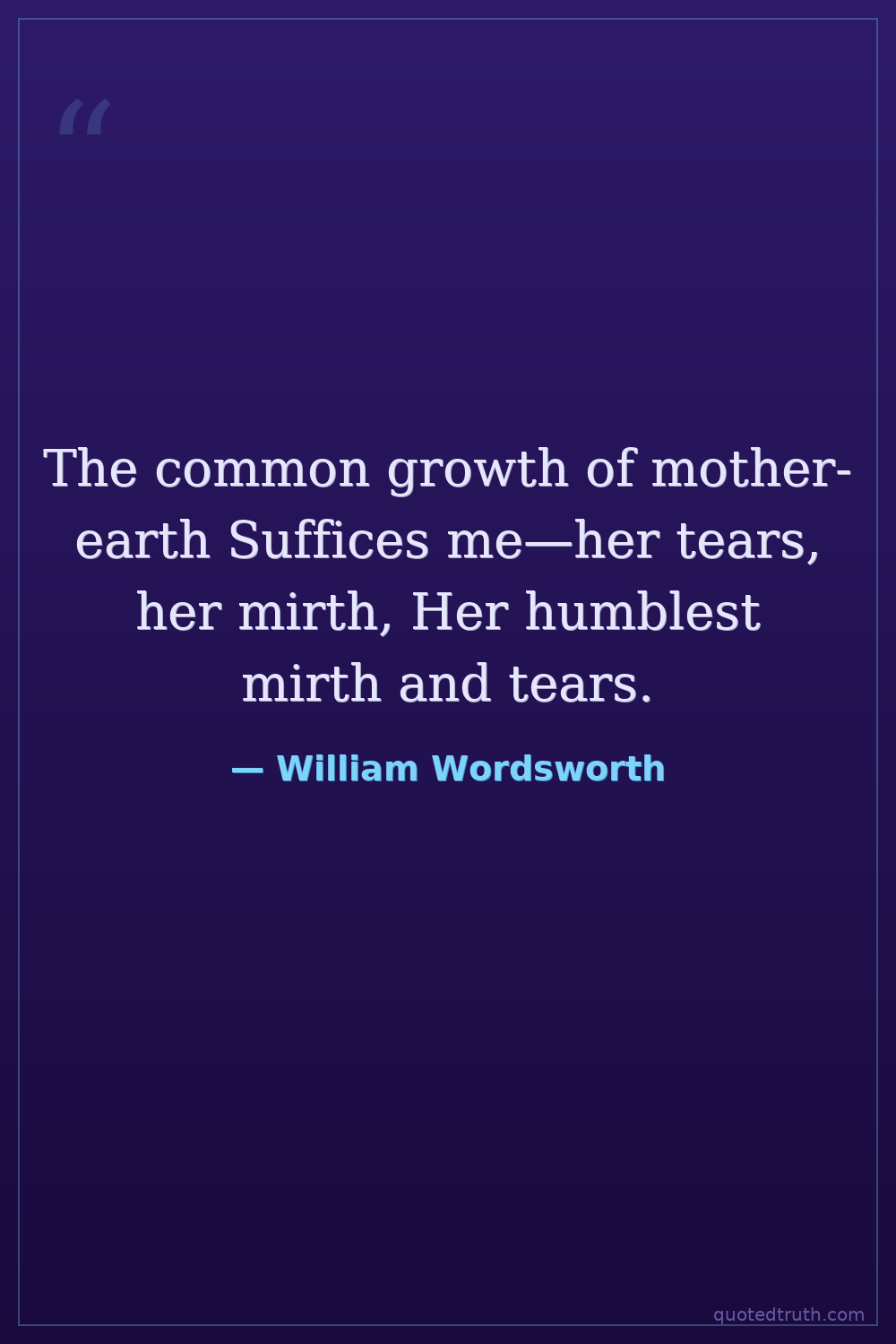 The common growth of mother-earth Suffices me—her tears, her mirth, Her humblest mirth and tears.