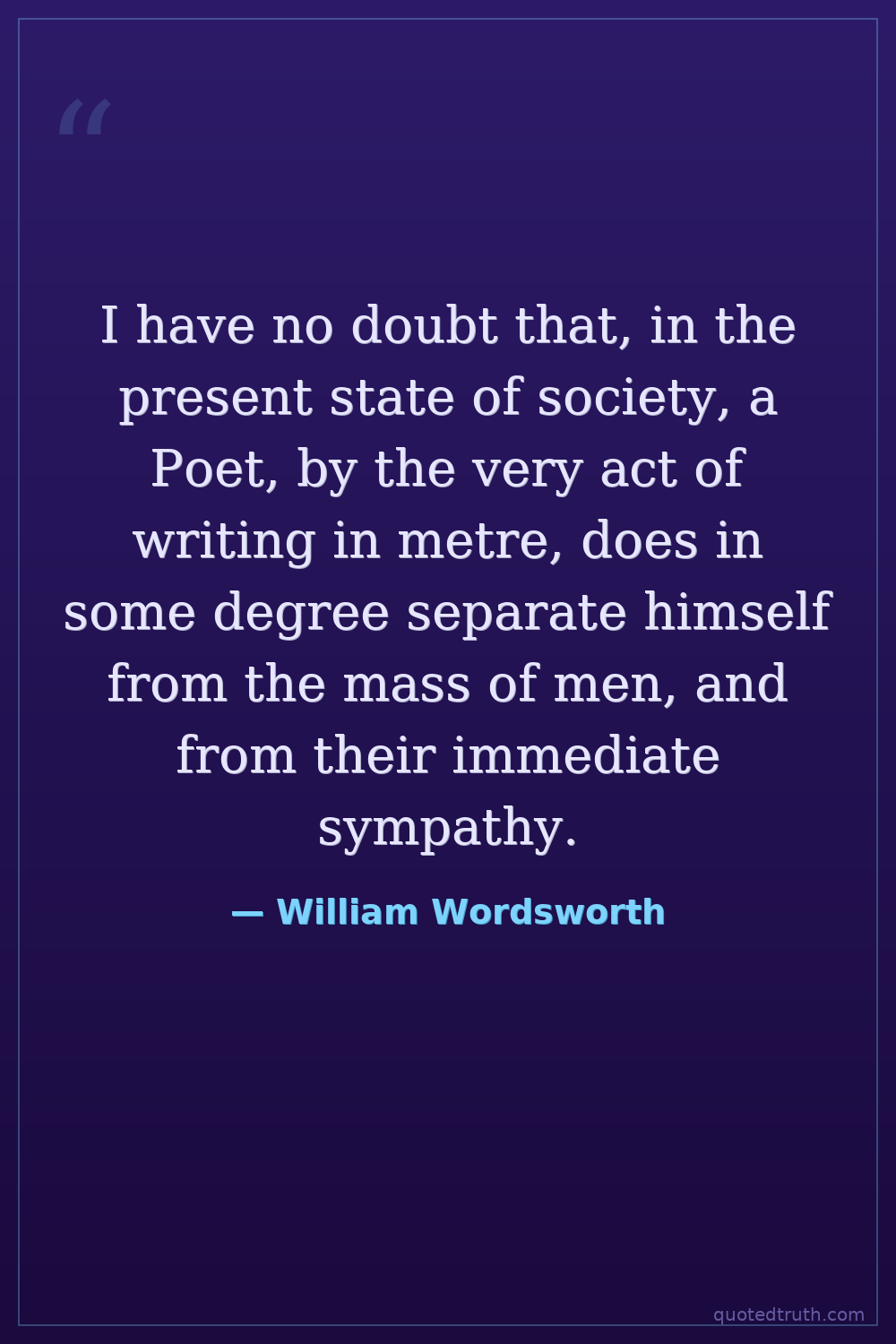I have no doubt that, in the present state of society, a Poet, by the very act of writing in metre, does in some degree separate himself from the mass of men, and from their immediate sympathy.