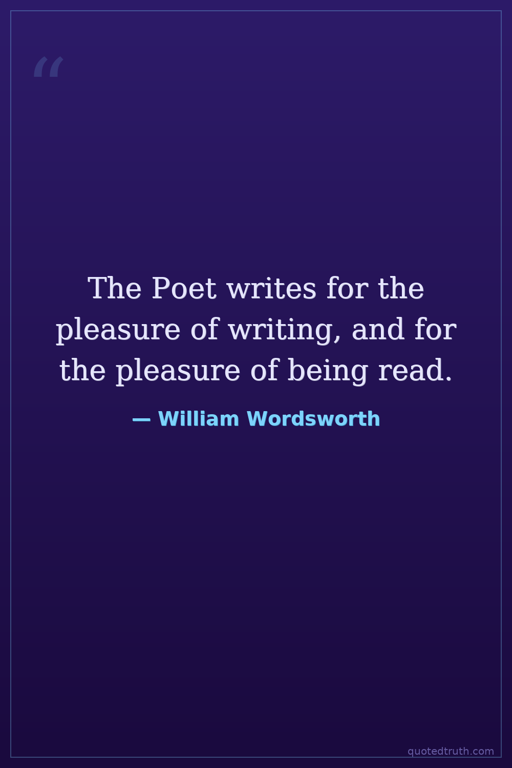The Poet writes for the pleasure of writing, and for the pleasure of being read.