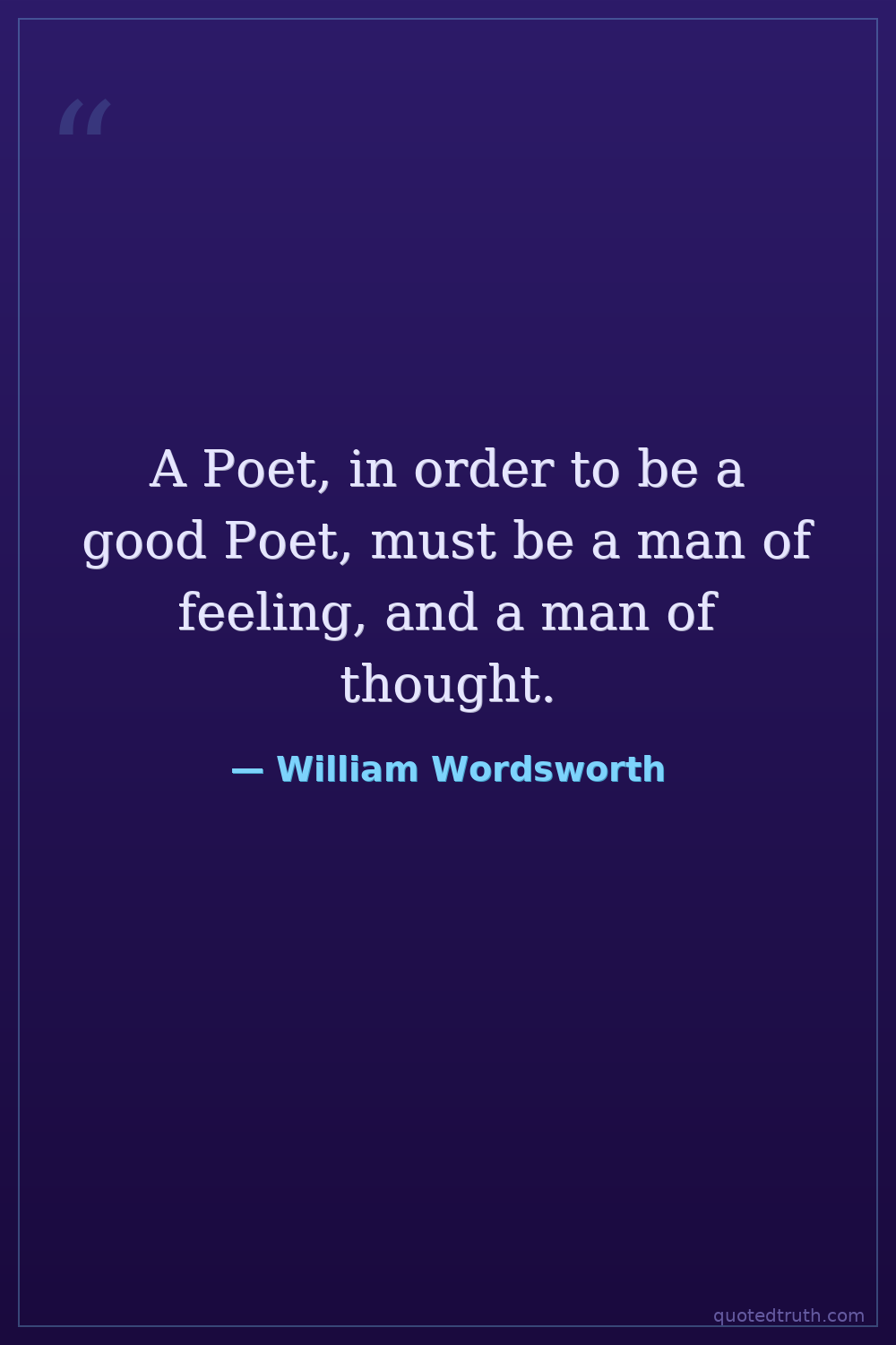 A Poet, in order to be a good Poet, must be a man of feeling, and a man of thought.