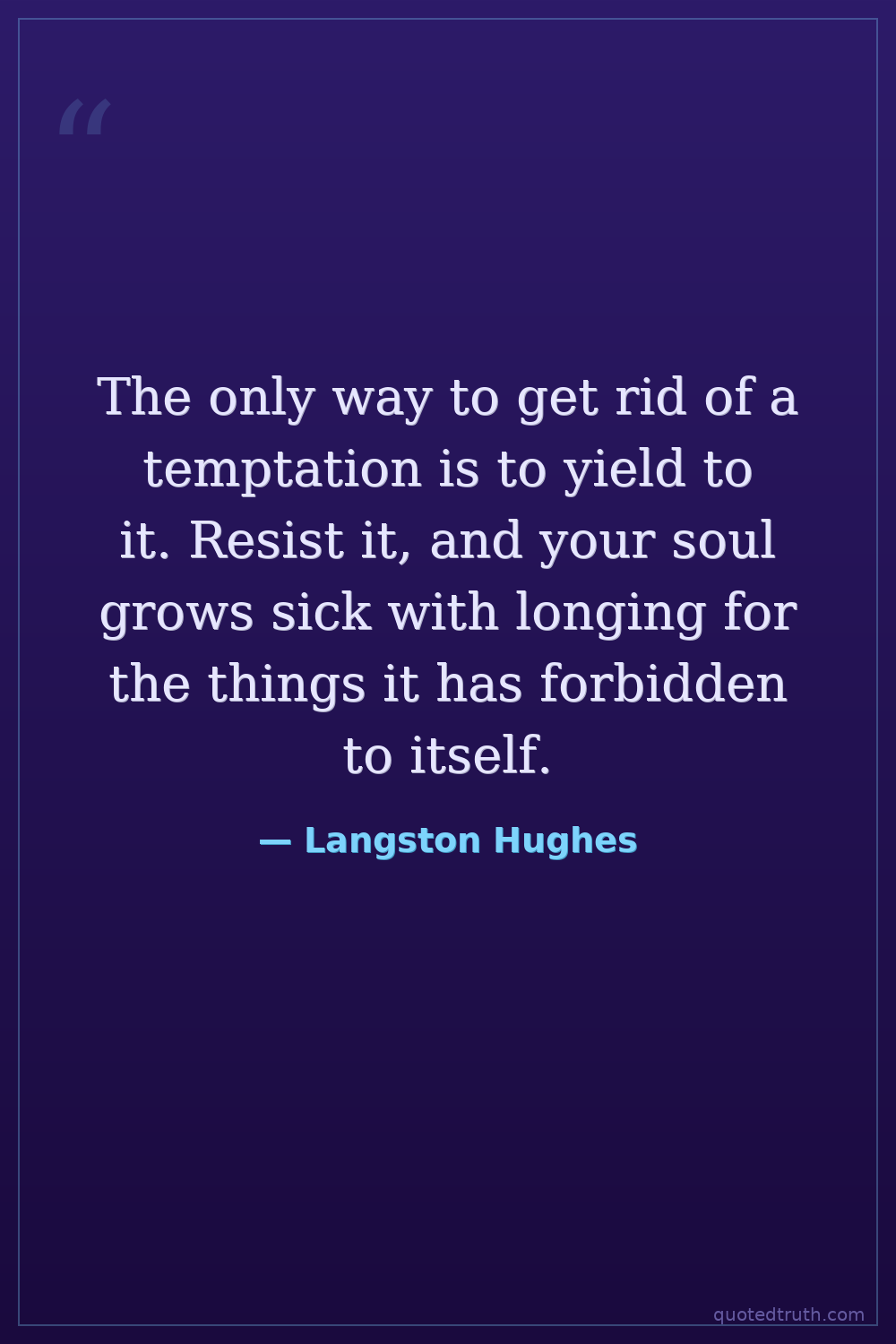 The only way to get rid of a temptation is to yield to it. Resist it, and your soul grows sick with longing for the things it has forbidden to itself.