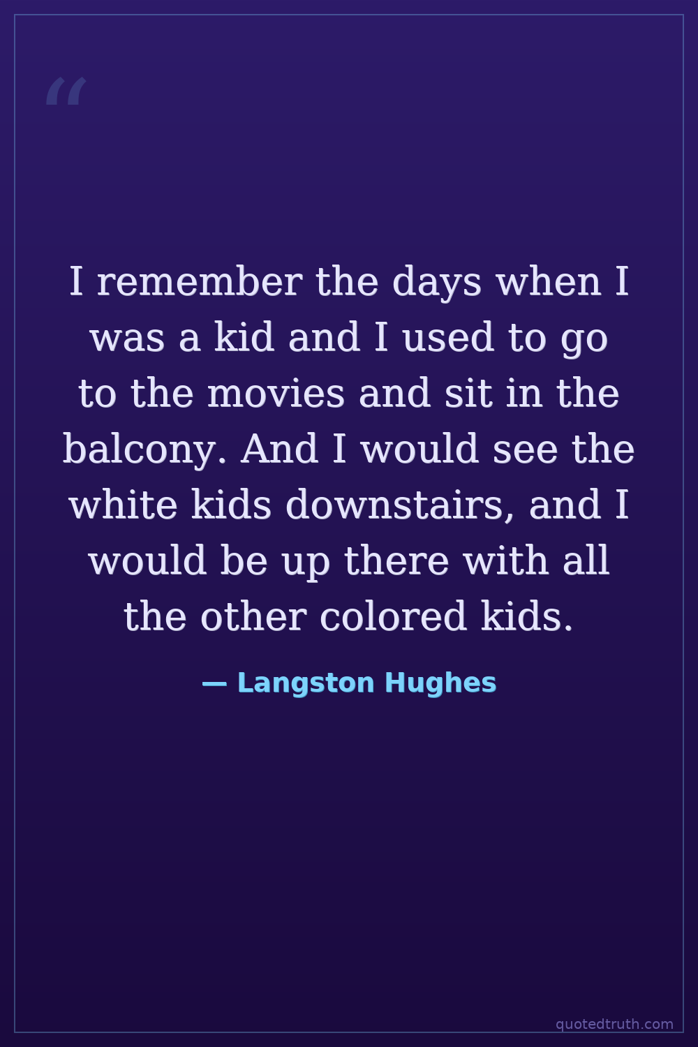 I remember the days when I was a kid and I used to go to the movies and sit in the balcony. And I would see the white kids downstairs, and I would be up there with all the other colored kids.