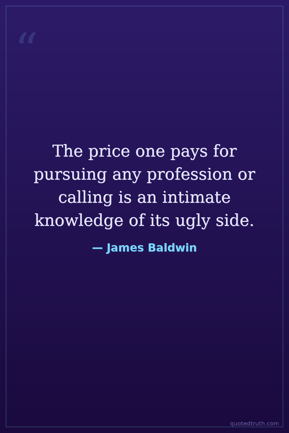 The price one pays for pursuing any profession or calling is an intimate knowledge of its ugly side.