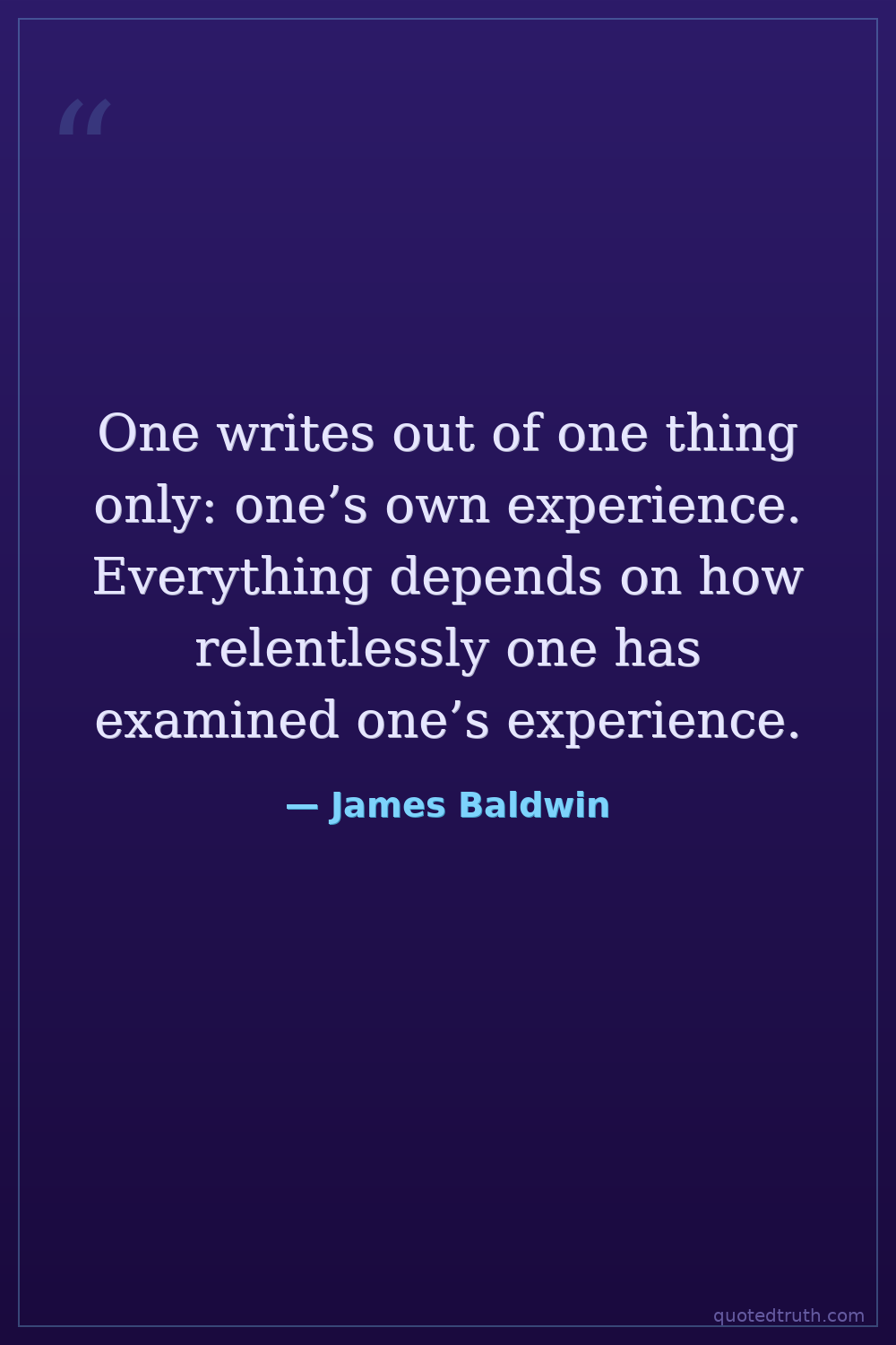 One writes out of one thing only: one’s own experience. Everything depends on how relentlessly one has examined one’s experience.