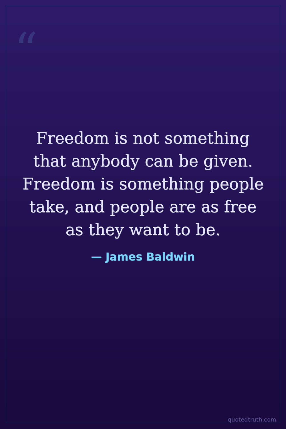 Freedom is not something that anybody can be given. Freedom is something people take, and people are as free as they want to be.