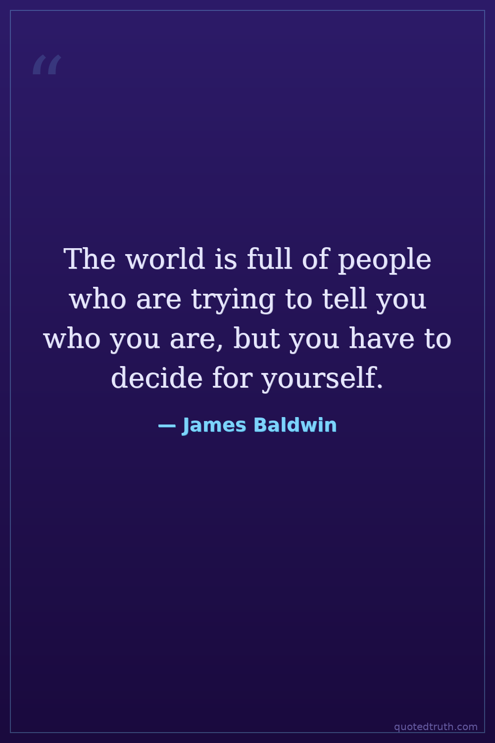The world is full of people who are trying to tell you who you are, but you have to decide for yourself.
