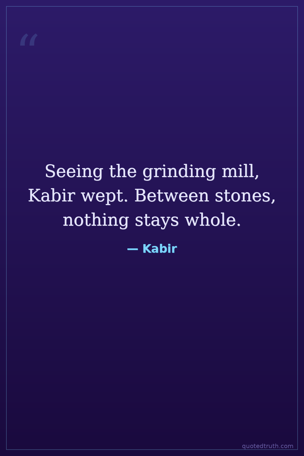Seeing the grinding mill, Kabir wept. Between stones, nothing stays whole.
