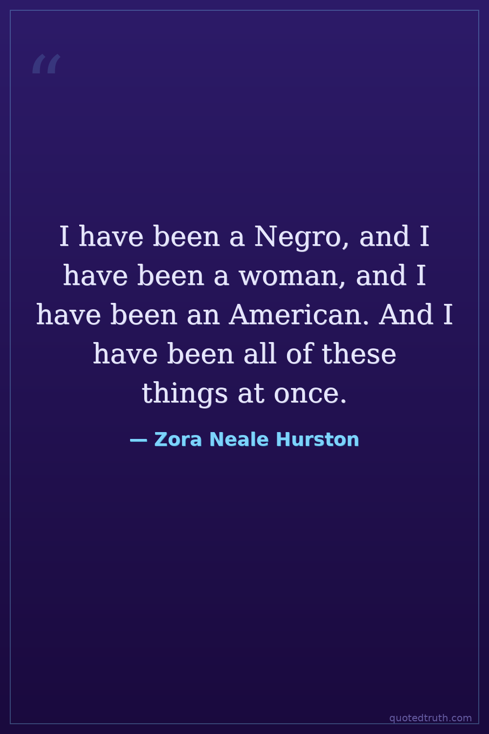 I have been a Negro, and I have been a woman, and I have been an American. And I have been all of these things at once.