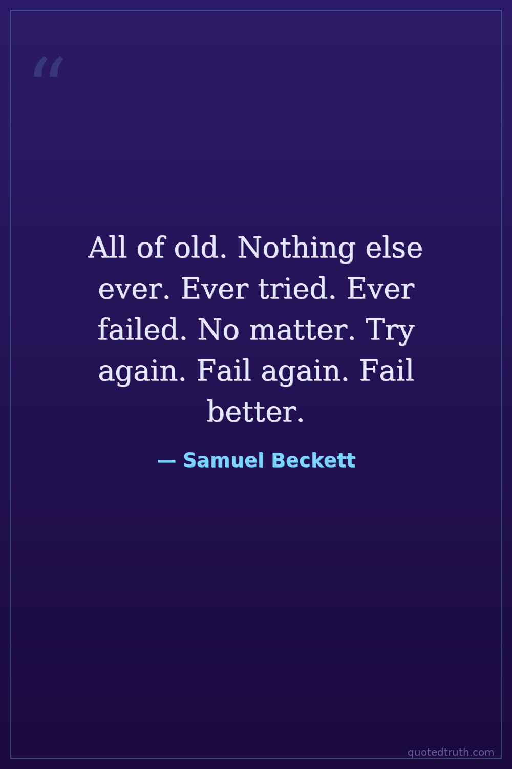All of old. Nothing else ever. Ever tried. Ever failed. No matter. Try again. Fail again. Fail better.