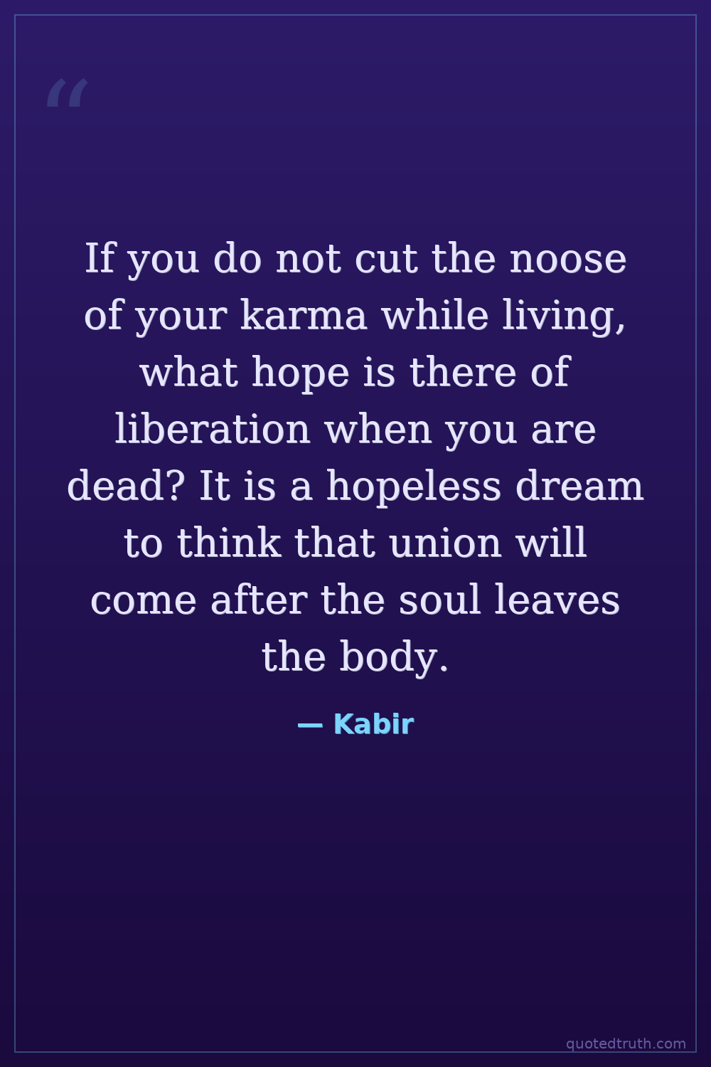 If you do not cut the noose of your karma while living, what hope is there of liberation when you are dead? It is a hopeless dream to think that union will come after the soul leaves the body.